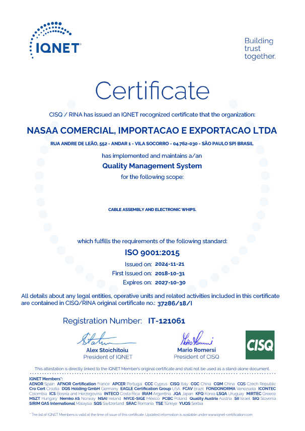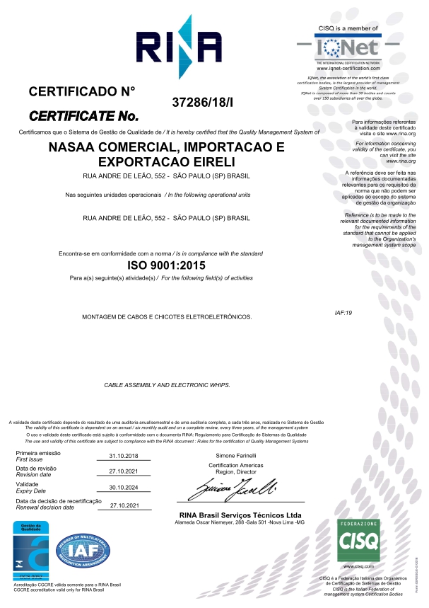 A NASAA tem ampla experiência em crimpagem de terminais e tecnologia para executar o processo em terminais extremamente pequenos. Além de qualidade ISO 9001:2015 a estrutura física da empresa fornece uma capacidade para atender grandes demandas.